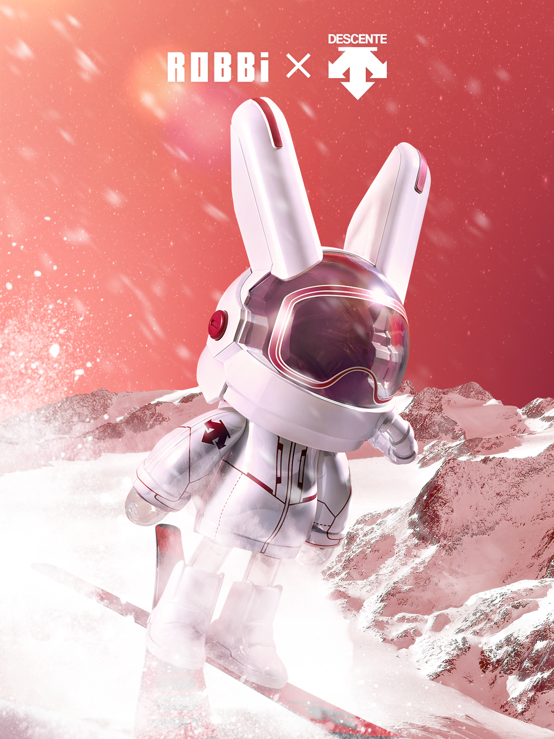 凭借「太空兔」的形象,ROBBi 的潮流属性和创新属性被大众所认知,吸引了在创新精神上有所共鸣的品牌。MCM、NBA、阿斯顿·马丁上海、DESCENTE 航天文化创意等多领域品牌的跨界合作,证明了 ROBBi 作为潮流文化交流平台的可能性,是丰富的,多元的,包容的。在 ROBBi 看来,潮流艺术触达五感,除了潮玩圈层常见的视觉、触觉层面,与其听觉、嗅觉,亦拥有一定的共通性。在 IP 创作中,艺术的表达应是无界的。