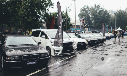 同在外场的国内权威改装车平台 iAcro 携 30 多辆改装车早已就位。此外,iAcro 还有专门的展位用于周边产品发售并与车友现场交流改装车文化。