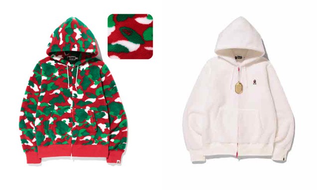 毛茸茸的温馨感,想必是在冬季中迫切需要的。A BATHING APE 在今年推出的圣诞系列单品就是以法兰绒物料设计,红绿的撞色搭配突出了圣诞的热烈气氛。售价为 26784 日元,先行于日本 ZOZOTOWN 发售,而国内 BAPE STORE 也将紧接着上架。