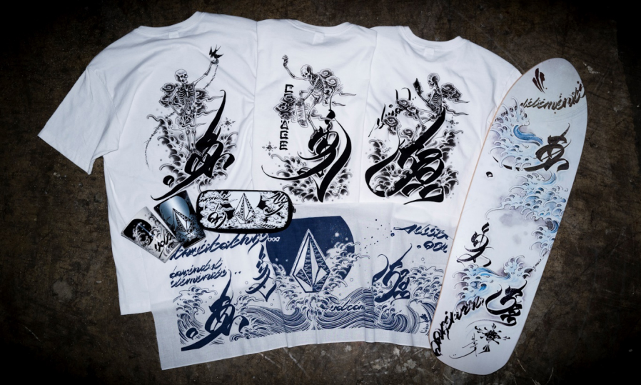 街头品牌 Volcom 在 2017 年春夏季的联名别注系列正是找来了 Toshikazu Nozaka 和 Usugrow 联合创作,推出三款主题印花 Tee、多功能文具包、日式传统手工酒杯、滑板以及围巾单品。Volcom 更为此举办了亚太地区巡回艺术展,而上海站也是其中之一,两位艺术家不仅亲自出席,还在现场即兴作画,为此次活动带来了艺术画作以及其他个人艺术创作。我们 NOWRE 也在活动中对两位艺术家进行了专访。