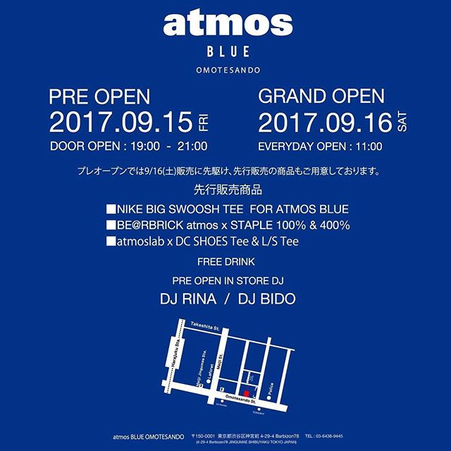 经过预告之后,日本球鞋名所 atmos 旗下的全新概念店 atmos BLUE 即将正式开业。从本周六即 9 月 16 日起 atmos BLUE 将面向大众开放,营业时间从上午 11:00 开始。此外 9 月 15 日的晚上 19:00 至 21:00 为先行开放时间,为此店铺也带来 Nike BIG SWOOSH TEE FOR atmos BLUE、BE@RBRICK atmos x STAPLE 100% & 400% 以及 atmos LAB x DC SHOES Tee & L/S Tee 这三组限定单品。之后有机会去日本的朋友,可以把这里列为新的打卡点了。