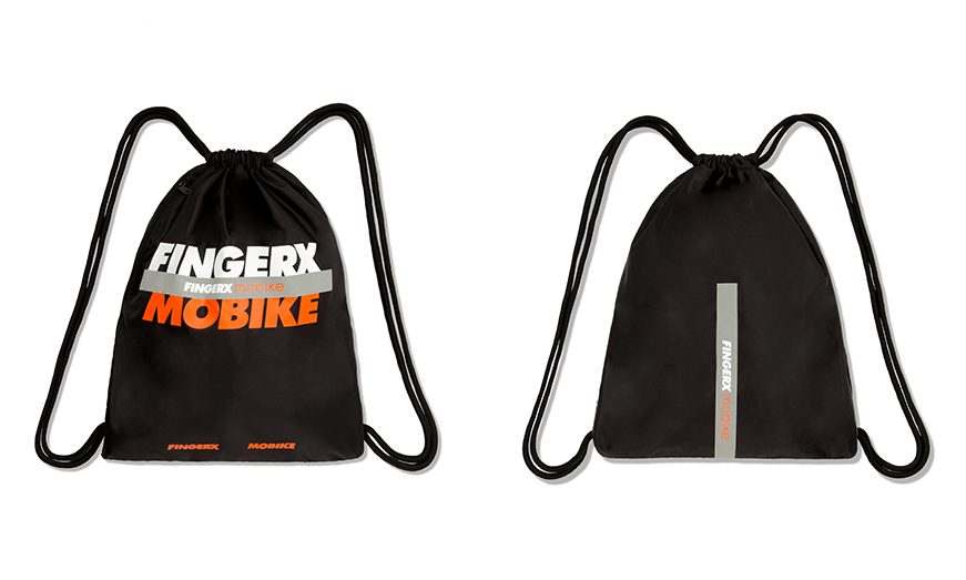本次 fingercroxx x mobike 特别打造联名套装,包括 T恤、短裤和抽绳运动包,打造极具活力型格的骑行装备。选择用黑色系延续 fingercroxx 的简约设计理念,巧妙的将 fingercroxx 和 mobike 双方 logo 结合,抢眼的橙色标充满活力,再加上 3M 反光材质,无论在白天还是夜间,你都是街头骑 “型” 达人。