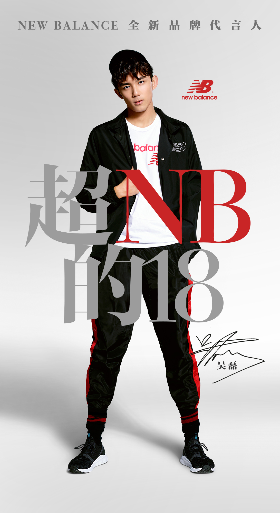 2018 年,New Balance 将携手人气明星吴磊开启品牌全新篇章。从童星,到青年演员;从男孩的青涩腼腆,到初熟少年的阳光帅气,刚刚举行 18 岁成人礼的吴磊已经蜕变为鲜衣怒马的闪亮少年。