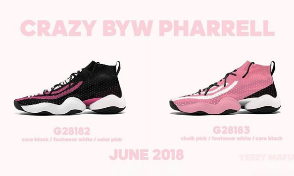 Pharrell Williams 与 adidas Originals 打造的 Crazy BYW PW 大家肯定都看过了,目前网上的炒价已经突破了万元大关,本周情报账号 YEEZY MAFIA 就为各位还没能入手的朋友带来了一波好消息。在今年 6 月的时候,adidas Originals 还将带来两款全新的配色,而新色的主题则是围绕颇为少女的粉色展开设计。不过就目前而言,官方还未有确定的消息发布,但对于没有机会入手上次发售的朋友而言,这也算是一个新的盼头吧。