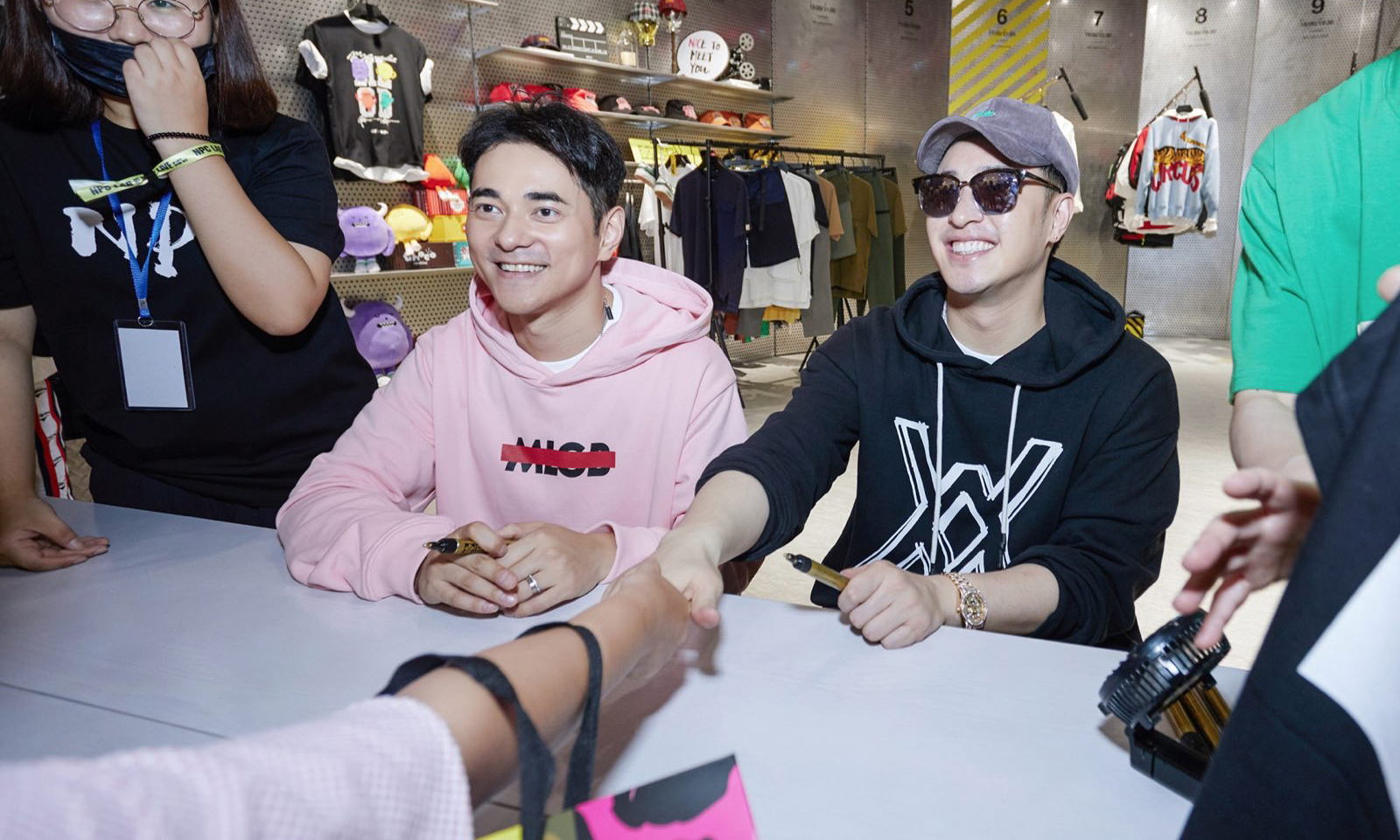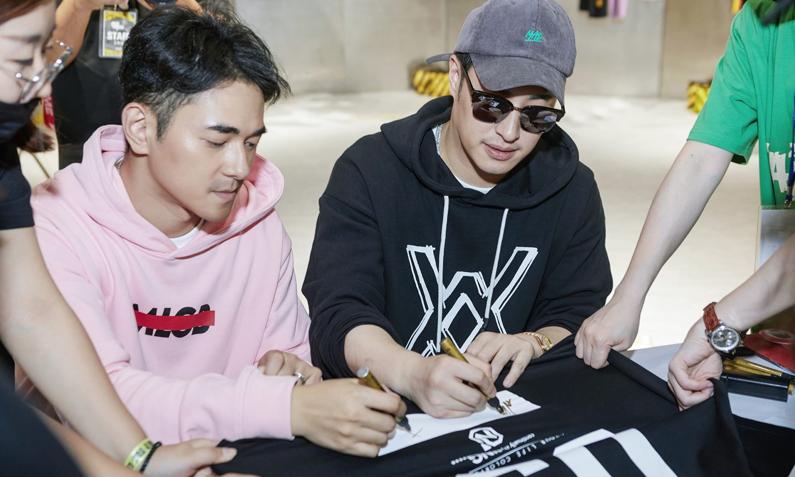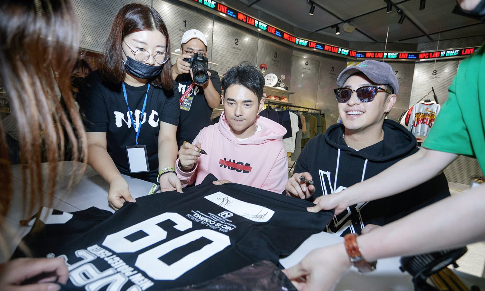 活动现场,李晨和潘玮柏与在场媒体、粉丝分享了自营潮店 NPC 九年成长故事,更将潮店创立以来具有特别纪念意义的诸多单品带到现场陈列:北京、上海、杭州、成都、南京、西安各家分店开幕限定周边,李晨手绘设计T恤、潮牌历年销售爆款和 NPC 一周年到九周年周年限定 T-Shirt。此外更借 NPC LAB 店开幕之际,举办纪念签售活动,现场签售自营品牌九周年限定T恤。