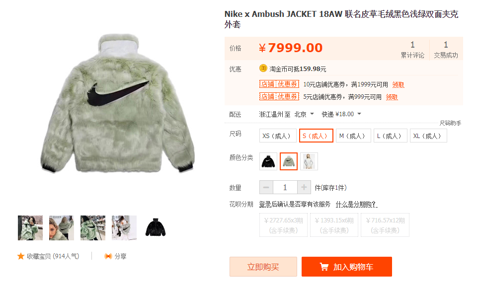 其中最有人气的 “皮草” 夹克,已经炒到了天价…(图片来源:taobao)
