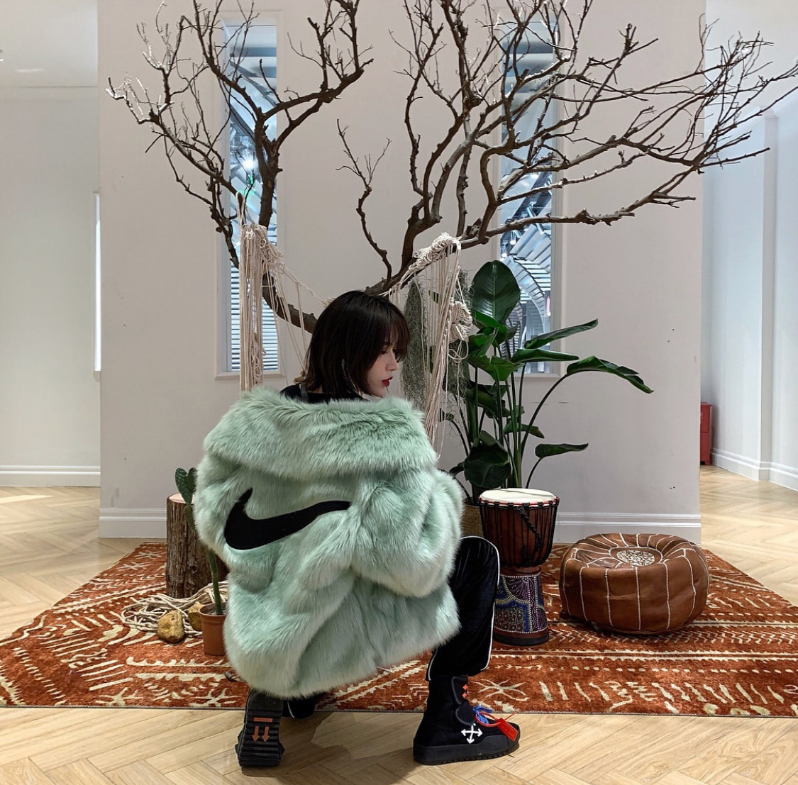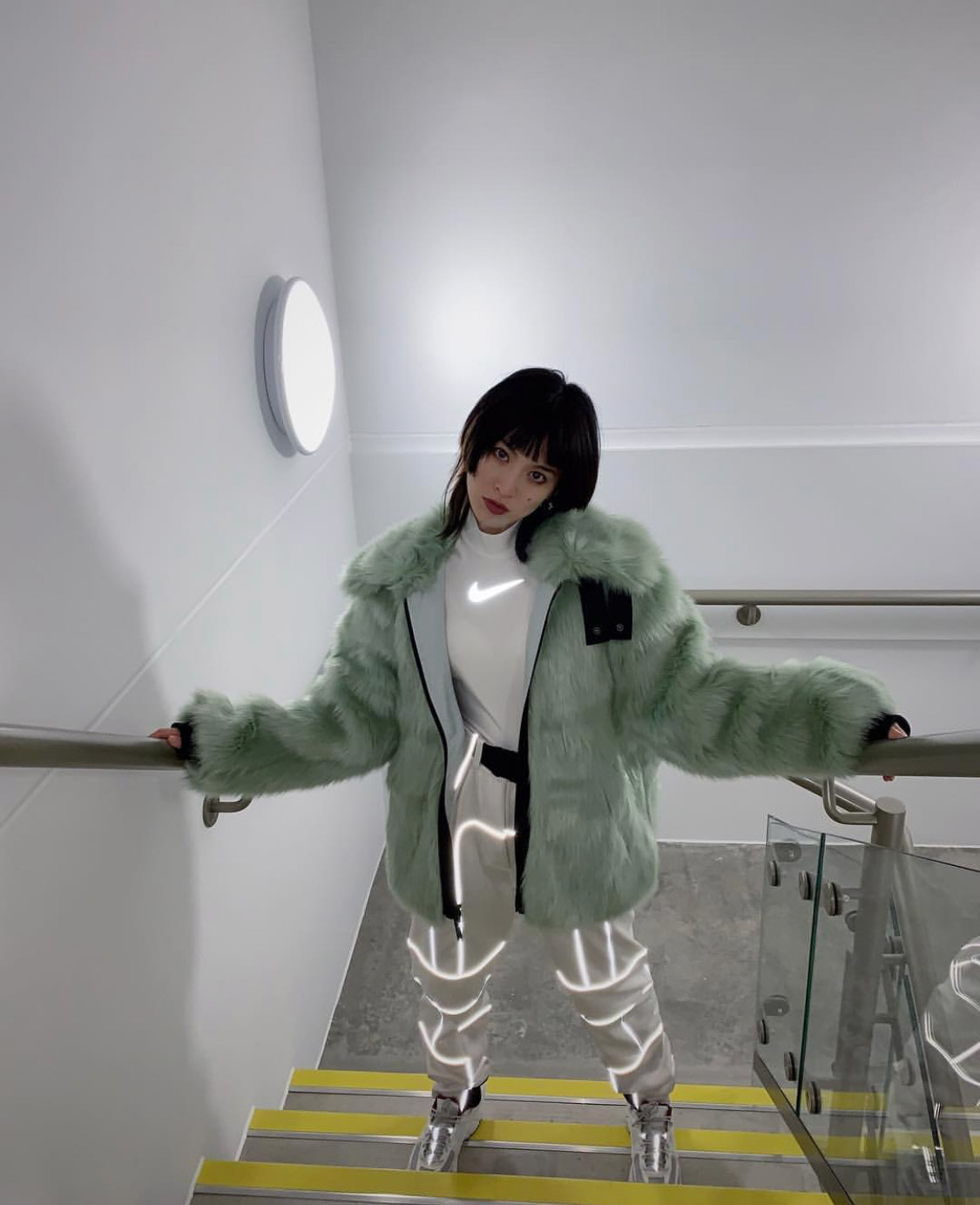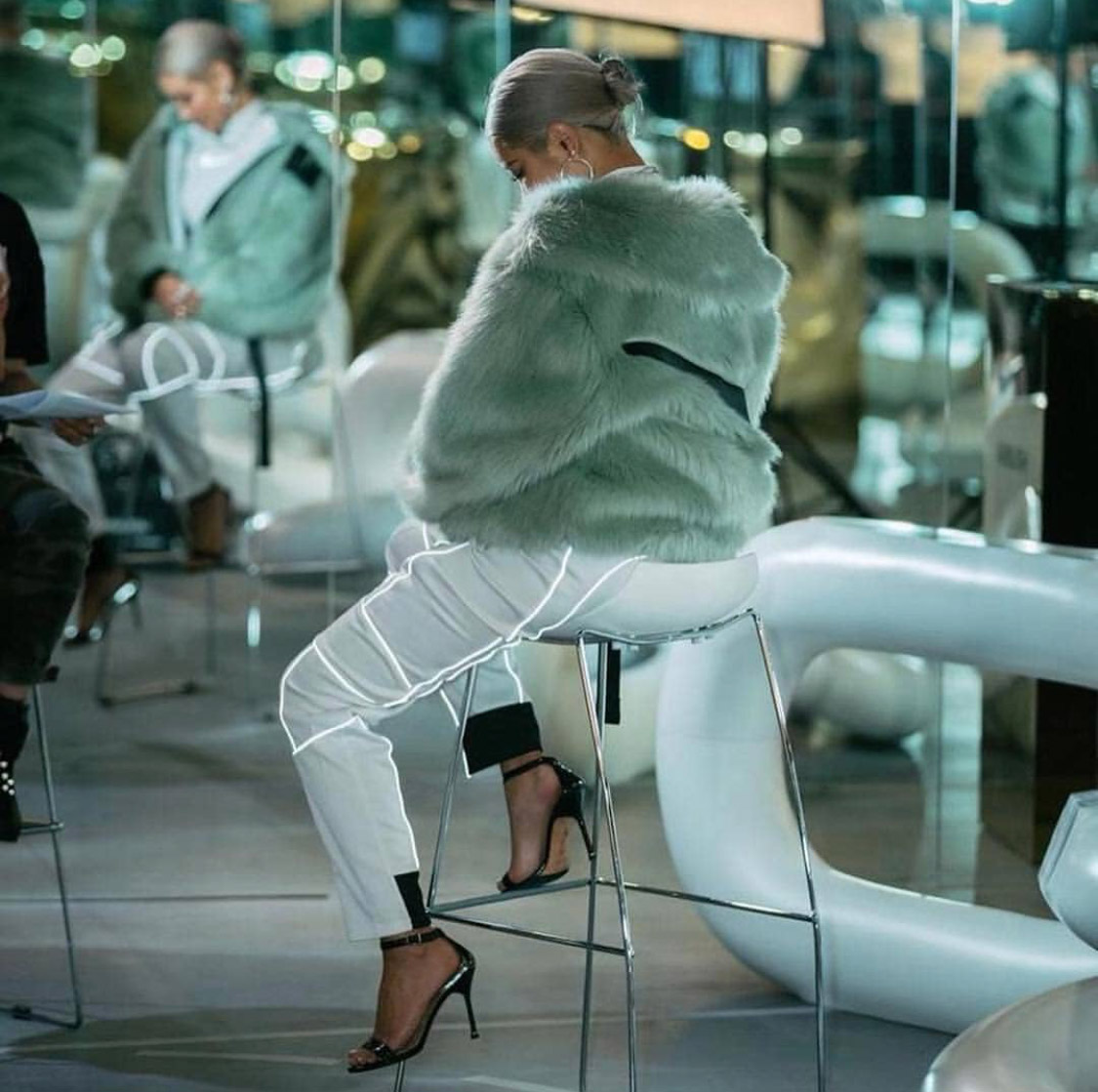 这一系列虽然上身效果极佳,但驾驭难度真的要比看起来难度大得多,需要有一定的气场和较好的身材才能 Hold 住。比如拿最火爆的人造毛夹克举例,穿的好看气场能提高不止一个档次,而反之…你就可能被列入 “暴发户” 的行列当中了,而短款紧身衣、高腰运动裤的款式,也成为了有小肚腩和身高偏低的朋友们的 “噩梦”,更何况,还有一众男生想要尝试上身。所以在文章的最后,来看看别人的驾驭示范就更有必要了…毕竟花了几千块入手,上身能够穿得好看才是最终目的。