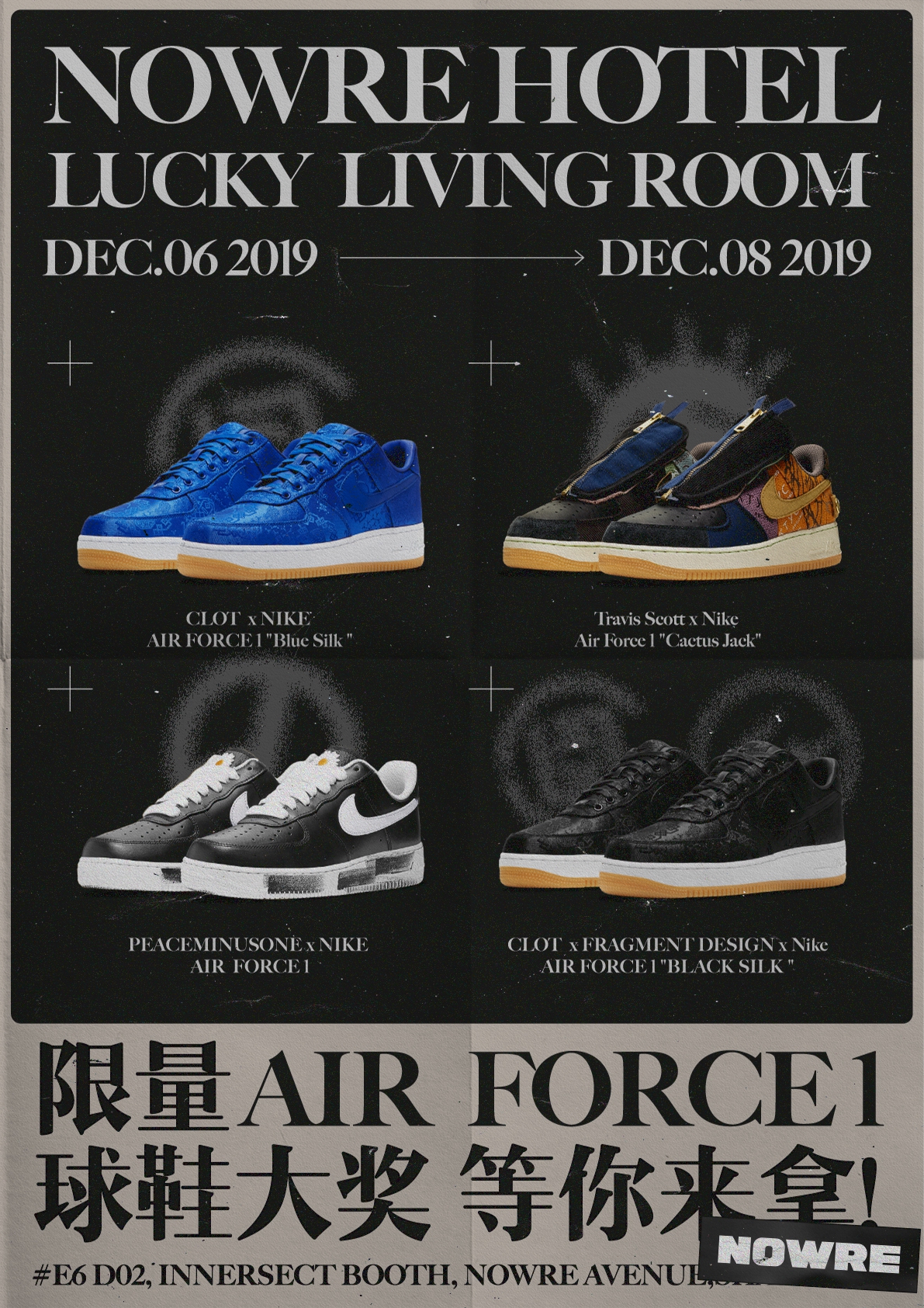 同时,只要参与 NOWRE BEERPOON 投杯球游戏,即可额外获得球鞋扭蛋一枚。NOWRE 在今次球鞋扭蛋中放置了四款「惊喜」:Travis Scott x Nike Air Force 1 、CLOT x Nike Air Force 1「蓝丝绸」、CLOT x Nike Air Force 1「黑丝绸」以及 PEACEMINUSONE x Nike Air Force 1 共四双。只要你手气够好,随时都可以将这些重磅 Nike Air Force 1 鞋款「带回家」。