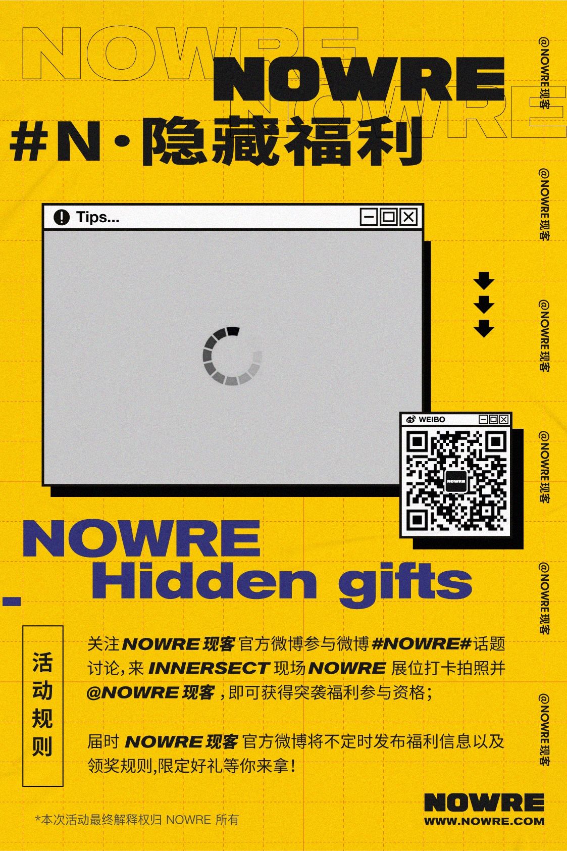 除了线下展位打卡,NOWRE 本次还将带来隐藏突袭福利。关注新浪微博账号「NOWRE现客」,参与微博 #NOWRE# 话题讨论,来 INNERSECT NOWRE 展位打卡拍照并 @NOWRE现客,即可获得突袭福利参与资格。届时,「NOWRE现客」官方微博将不定时发布福利信息及领奖规则,限定好礼等你来拿!