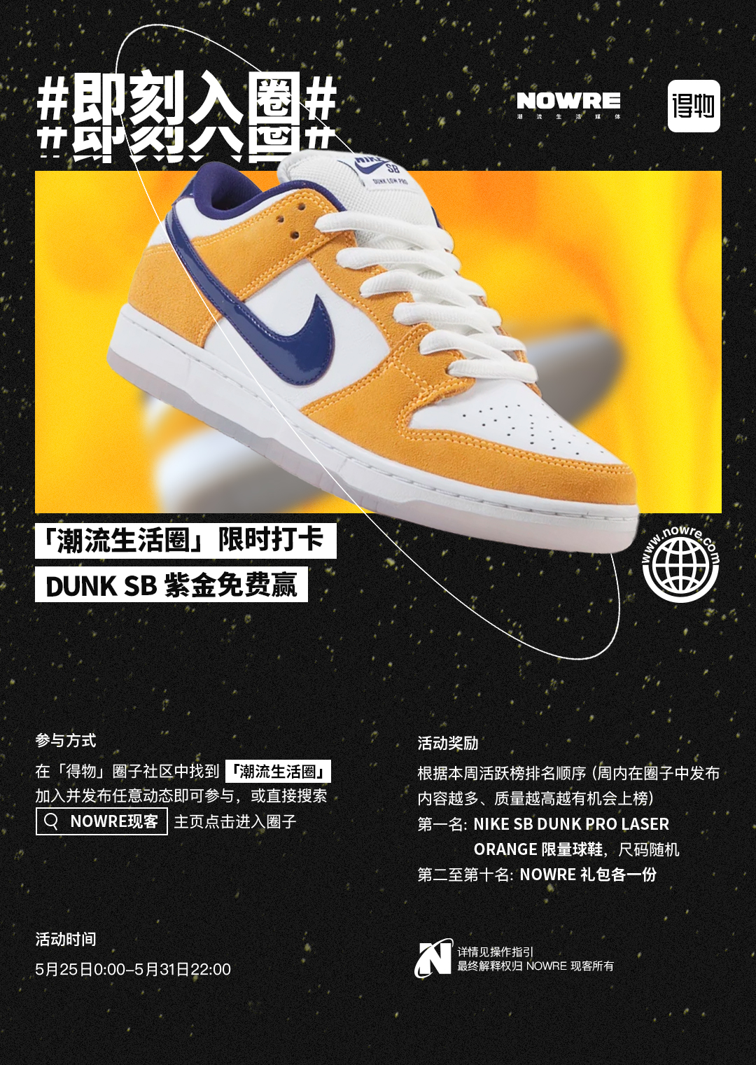 「即刻入圈」活动一等奖:Nike SB Dunk Low Pro Laser Orange