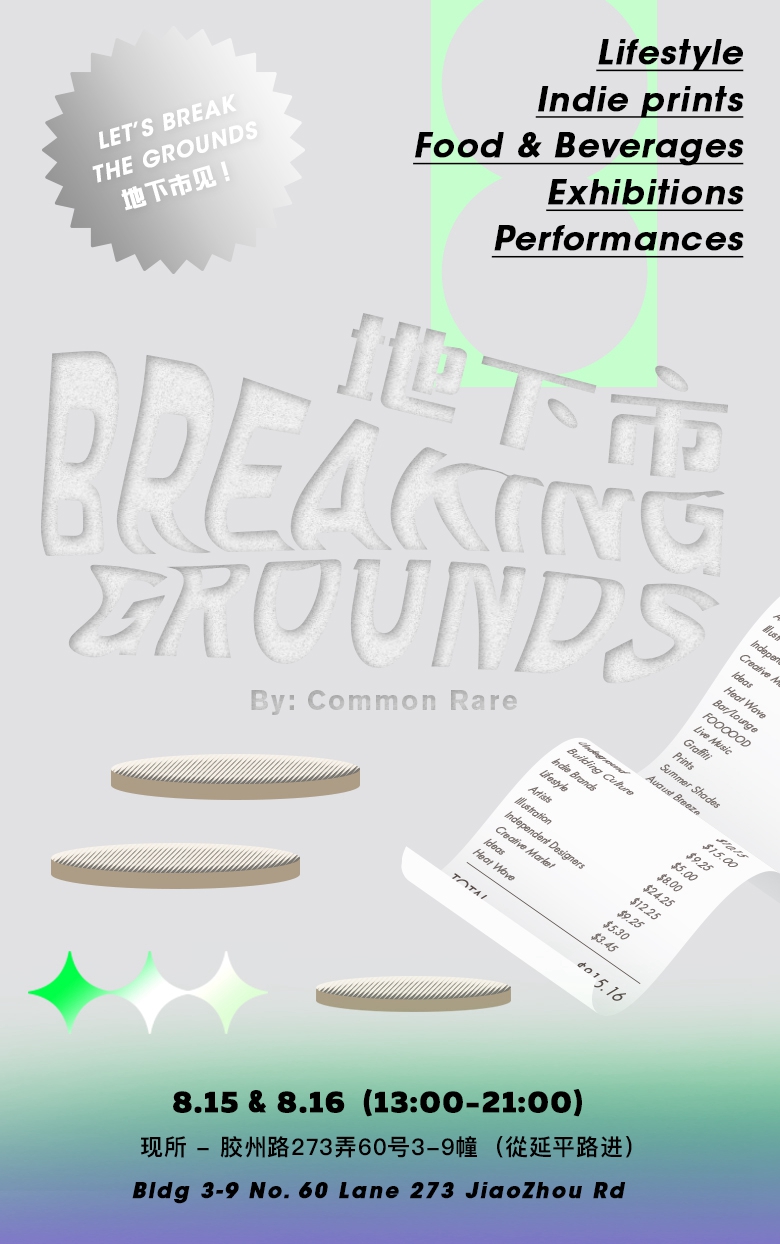 说到此次 NOWRE「SHOW AND TELL」特别活动的合作方,凡几「Breaking Grounds」地下市集一直是深度探索「地下潮流」的神秘宝地。此次 「Breaking Grounds」地下市集中,国内、外 70 余家跨界潮流、艺术、生活方式的独立原创品牌将令每一位参与者成为「潮流正在发生」的见证者。无论是从未面世的新鲜想法,还是独一无二的「次世代」生活方式、更为纯粹、小众的「地下文化」,都将在「Breaking Grounds」地下市集一一呈现。