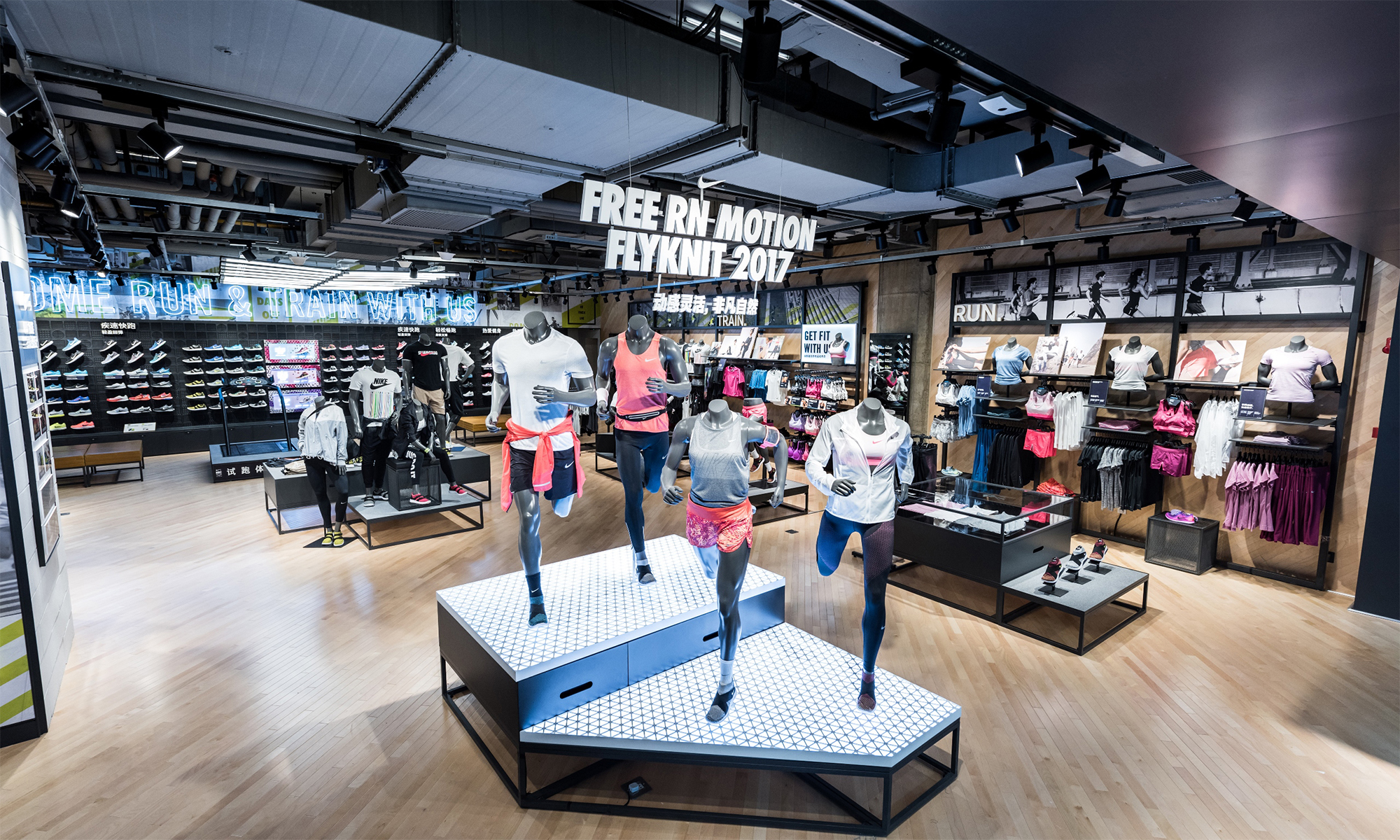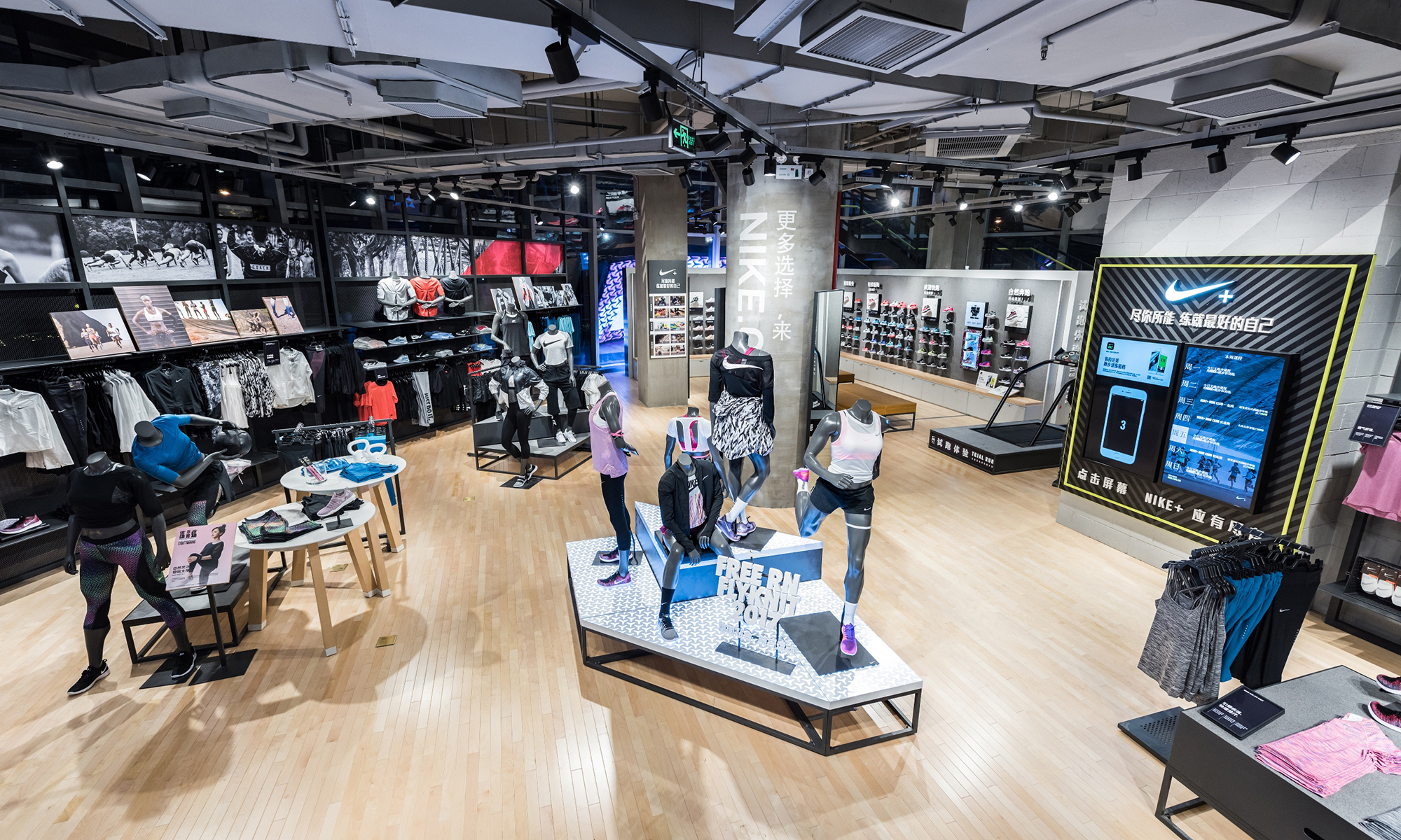 同样位于兴业太古汇的跑步体验店会为跑步爱好者提供一站式服务,除了专业的跑步产品外,跑步产品区域同时配备顶级的跑步机,消费者通过专业的测量及真切试穿感受,来挑选到更适合的跑步鞋款,同时设有 NIKE+ 专区,消费者可进行更多互动体验。