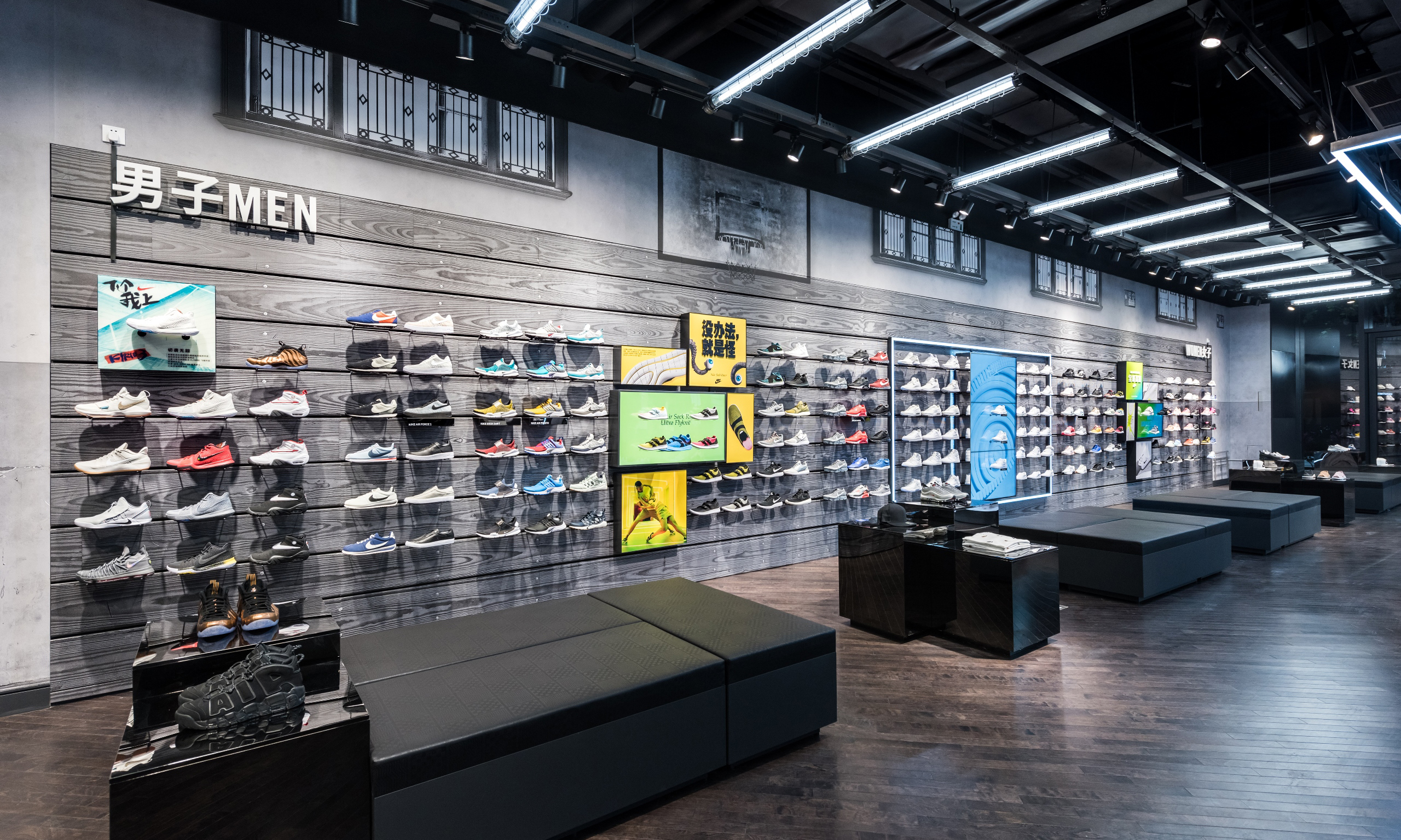 店内提供包含耐克跑步、运动生活、篮球及 Jordan 品牌系列产品,其中特别规划 Jordan 专区为消费者带来最具故事性与科技创新的产品。值得一提的是,店铺内长达 16.64 米的球鞋展示墙 POWER WALL,可陈列超过百余双的鞋款,而此 POWER WALL 开拓性地采用新的产品陈列分类方式,结合专业运动与潮流文化,将产品以主题性与功能性交织陈列进行区分,让消费者抛开束缚,尽情发掘最新的球鞋故事,激发球鞋搭配灵感,让消费者都能找到心目中的 “那双鞋”。