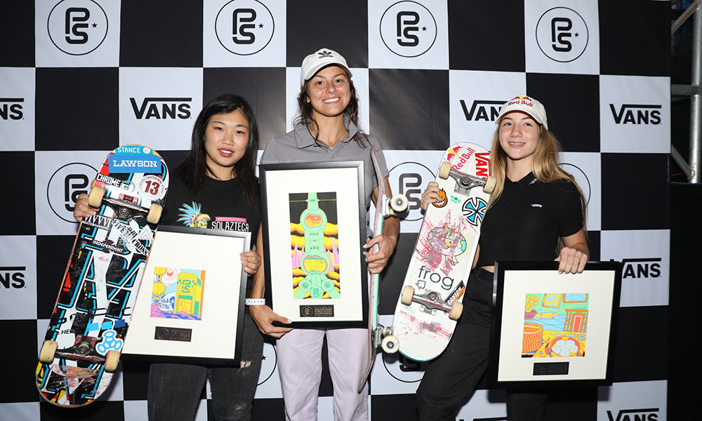 女子组的比赛中,2017年 Vans 职业公园滑板赛冠军 Nora Vasconcellos 突破常规,献上了轻松而充满技巧性的动作,在半决赛和决赛中都排名第一。紧随冠军 Vasconcellos 之后的是卫冕冠军 Brighton Zeuner,她凭借自己的速度和精准度获得了第二,Kisa Nakamura 放出了自己的绝招,获得第三。