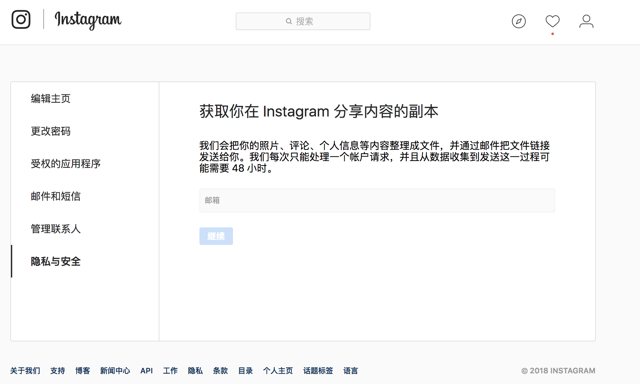 作为重要的社交平台,Instagram 里的很多资料都是大家想下载保存下来的。近日传闻已久的 Instagram 数据导出工具正式上线。现在只要去 Instagram 网站或 APP 内的隐私设置页面,就可以找到下载数据的选项。提供接收的邮箱地址后,Instagram 就会给你发送一条包含照片、评论、个人资料等文件内容的链接。不过因为一次只能处理一个帐号的请求,所以从数据收集到发送这一过程可能需要 48 小时。感兴趣的话现在就去试试这个新功能吧。