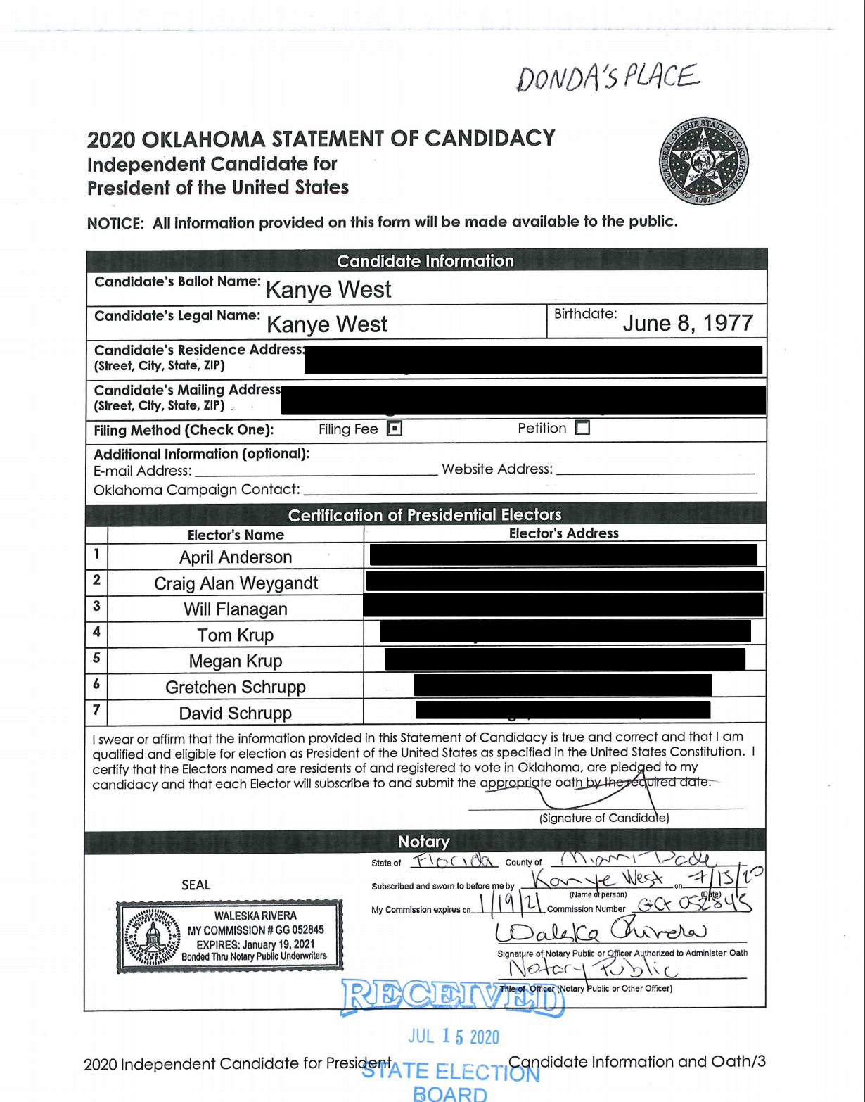 昨天 Kanye West 的竞选顾问 Steve Kramer 在接受采访时表示 Kanye 已经退出竞选,一时间大家都以为他又是嘴上说说而已。但今天事件再现反转,TMZ 表示 Kanye West 并没有退出,而且已经交了 35,000 美元的申请费,并且成功获得了俄克拉荷马州的独立候选人资格,将在那里开启自己的政治生涯首秀。虽然最终结果不太可能实现总统梦,但 Kanye 起码已经付诸行动了。