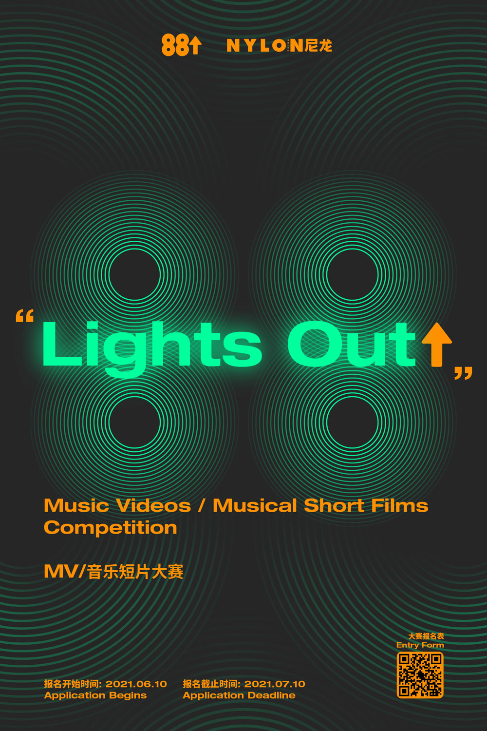 为发现下一位最佳创作者,打造一个庆祝无限想象力与创造力诞生的摇篮。88rising 与 NYLON 将联合举办「『Lights Out!』音乐短片大赛」。日前,大赛已正式开放报名通道,参赛者可通过海报中二维码扫码填写报名表,将参赛作品线上链接附在报名表中相应的填空里进行提交。同时 88rising 还正式公布了「『Lights Out!』音乐短片大赛」,参赛作品需围绕和使用 88rising 曲库中的任一音乐片段进行创作。大赛优胜者将会获得由 88rising 提供的创作基金,其作品还将在 88rising 和 NYLON 的官方线上平台展示,优胜者将有机会在未来与 88rising 和 NYLON 一起创作更多新的作品。所有奖项都将最终通过 88rising 和 NYLON 官方线上平台进行揭晓。