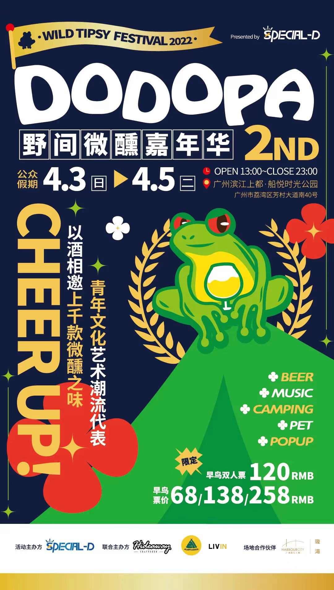 DODOPA 就是由创意机构 SPECIAL-D 在广州发起的一个「在大草坪上举杯」的嘉年华派对,集合了众多来自不同单位的啤酒品牌及精酿啤酒出品,合共数十个品牌、单位提供多达数百种不同口味的啤酒产品,所以根本不用担心找不到合适的啤酒口味,反而需要担心一下时(jiǔ)间(liàng)够不够…不过说到底喝酒还是得适可而止,微醺就好。