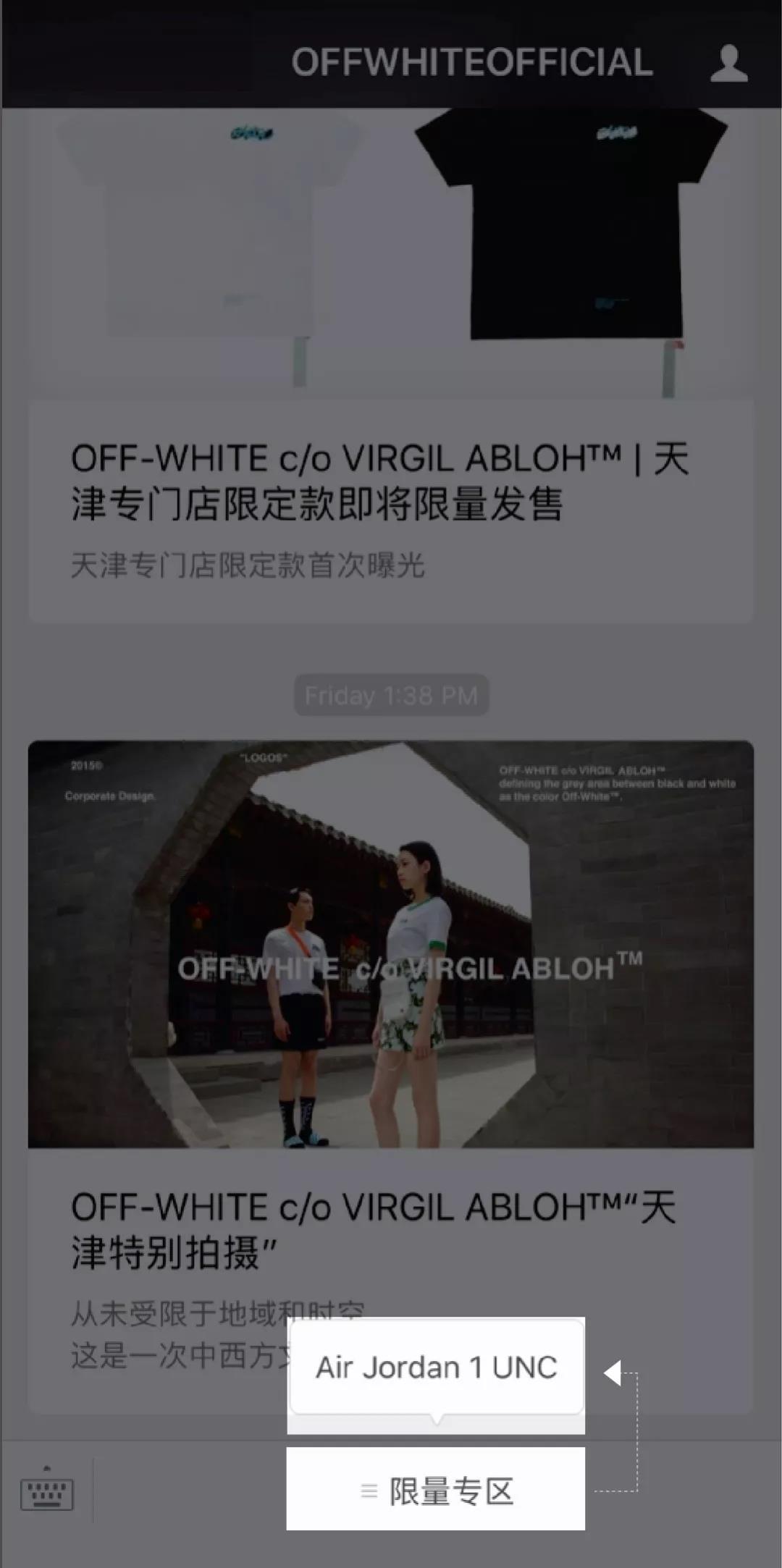售价 ¥1399 元,想要登记的朋友请在微信上关注 Off-White™ 官方公众号(OFFWHITEWECHAT),并按照下方的提示进行预约,祝大家好运啦!