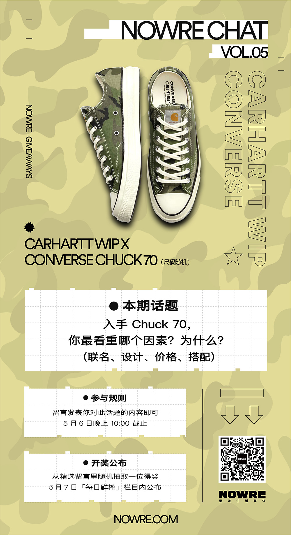 「NOWRE CHAT」送你 CARHARTT Chuck 70,进来聊聊你入手 Chuck 70 的原因?