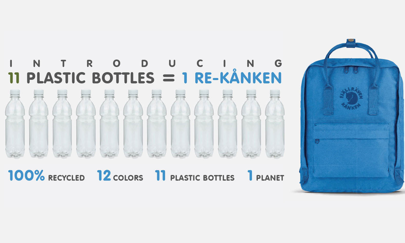 也许是因为外形讨喜,瑞典户外品牌北极狐(Fjällräven)出品的 Kånken 双肩背包曾一度成为大街上的爆款。最近北极狐就为 Kånken 在原先基础上推出了一个环保版本 Re-Kånken,整个背包都是由塑料矿泉水瓶制作的 (除了拉链、钮扣和塑料扣环),回收材料率高达 95%。本次 Re-Kånken 也分为容量 16L 的标准版和容量 7L 的 Mini 版,售价分别为 89 欧元和 79 欧元;配色方面也非常丰富,标准版有 12 种颜色可供挑选,Mini 版也有 11 种,感兴趣的朋友可以通过北极狐官网选购。