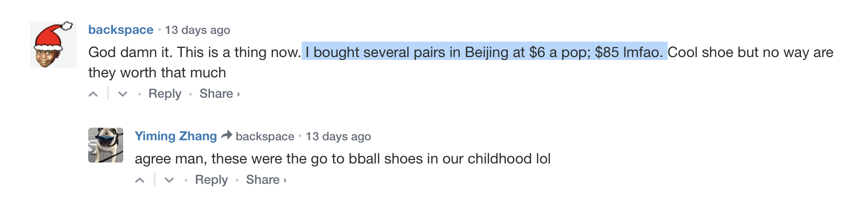 外国小哥在北京买过 6 美金一双的回力,85 美金?哈哈哈 (图片来源:HYPEBEAST)