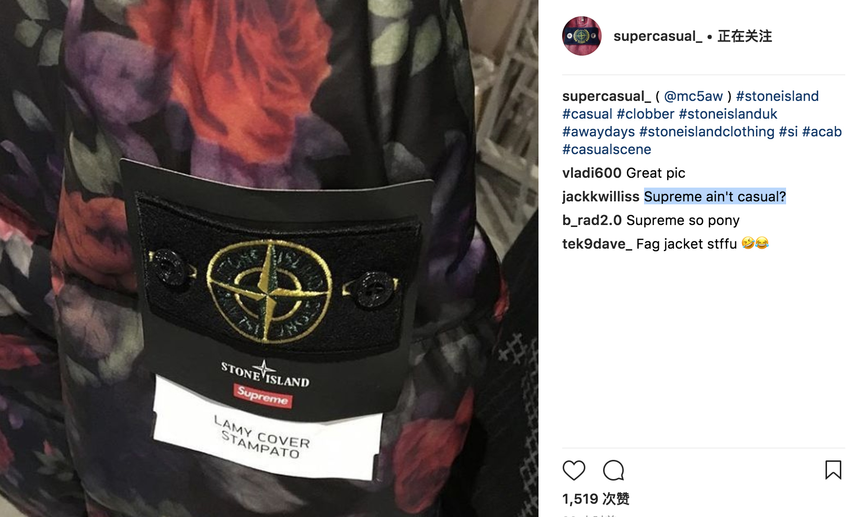 打开现在几个知名 Casual Instagram 账号,满眼都是 Stone Island,如果不知道这种亚文化的起源和发展,还真以为现在欧洲球迷都开始混潮流圈了…