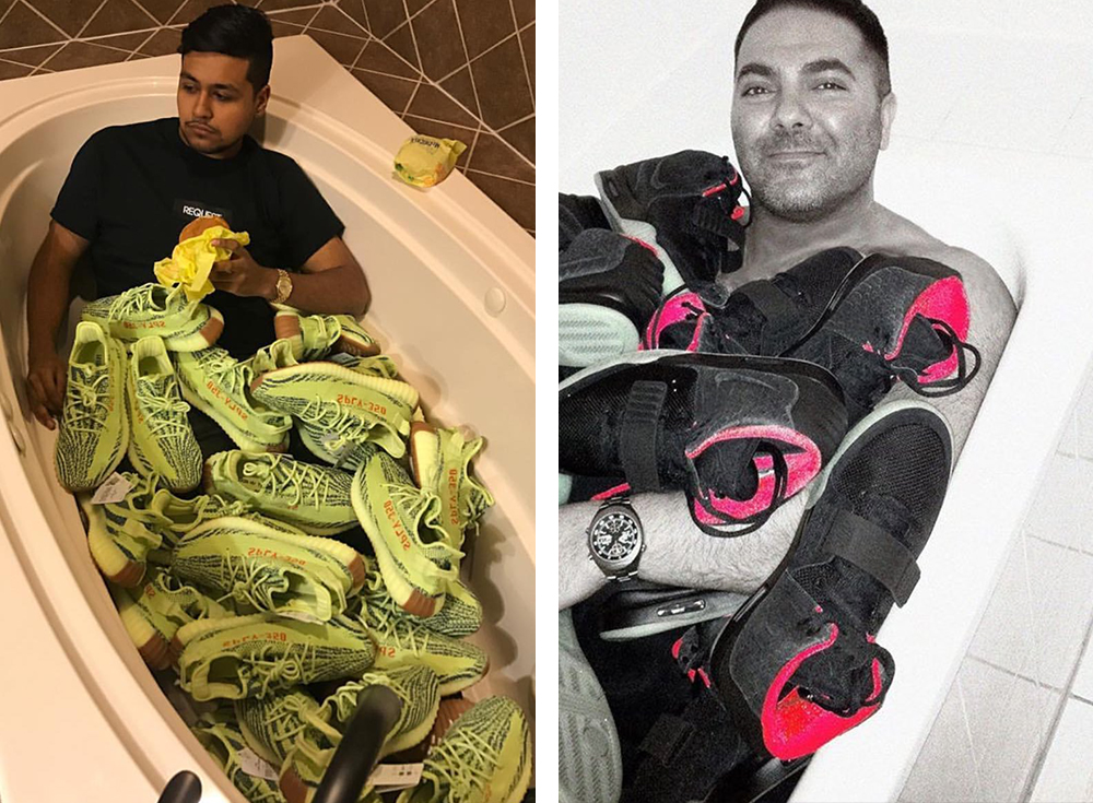 球鞋圈的 Sneaker 们也有自己的一套,尤其是那些喜欢“晒”的收藏玩家,他们都特别喜欢被球鞋包围的感觉,因此你能在社交网络上,发现很多在浴缸内泡澡的 Sneakerhead ,不过他们泡的并不是水,而是球鞋…