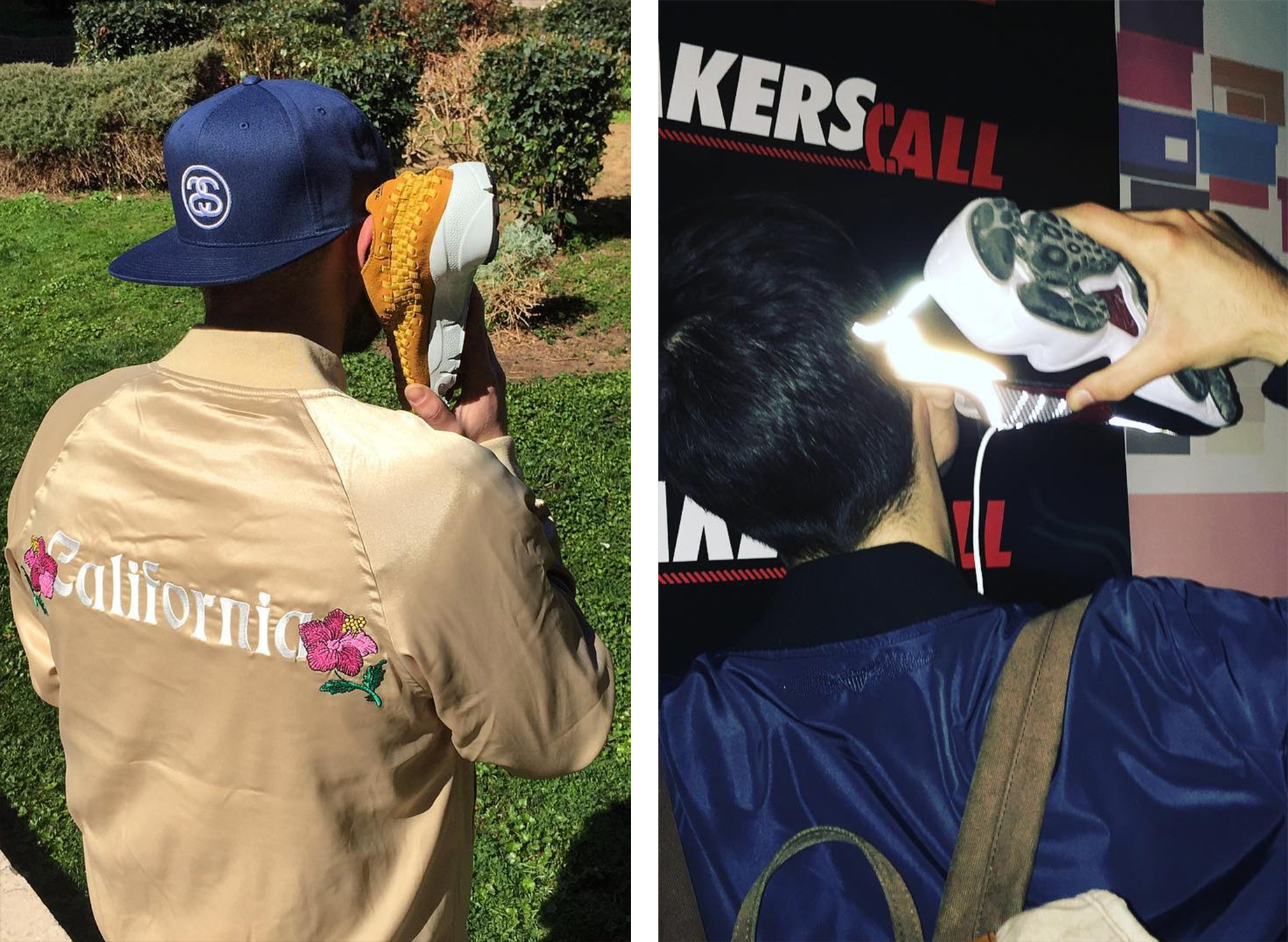 这只是其中一种现象而已,每当一些限量版的球鞋发售之际,搞到手的 Sneaker 更有他们统一的庆祝方式 — Sneaker Call ,就像上面这样,我相信你没少见这样的动作。
