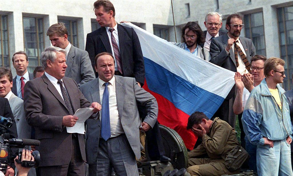 科普一下,叶利钦凭借 1991 年站在坦克上振臂一呼、成为 “苏联——俄罗斯” 转变的直接 “经办人”。