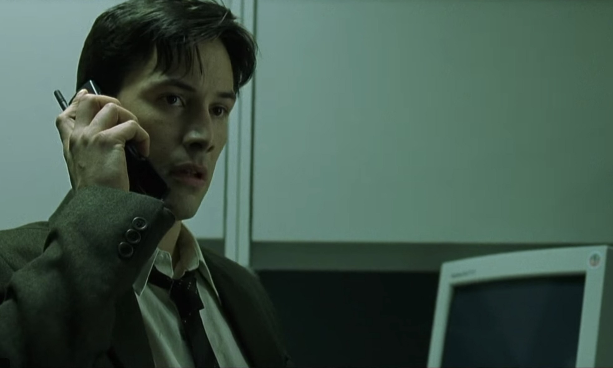 还记得 《黑客帝国》 里的这一幕吗?当基努里维斯从快递袋拿出这台诺基亚的一刻,简直酷到想飙脏话 (图片来源:《黑客帝国》)