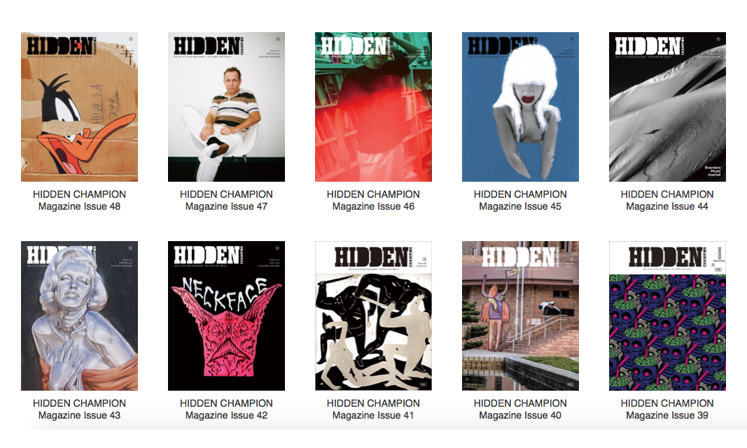 《HIDDEN CHAMPION》是一本 2003 年成立于东京的免费杂志,每年发行 4 期,专注在街头文化的各个方面,街头艺术、音乐、滑板、服饰、BMX、摄影等,是日本最重要的街头文化自由出版物之一。当你逛到各种东京街头店铺、咖啡厅、滑板店、书店,细心留意都可以随手拿到一本。