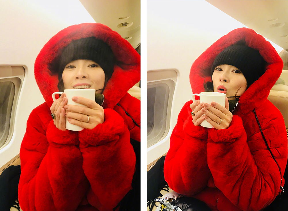 除了在节目中花式上身 Lost General,这件毛绒外套也成了章子怡的日常保暖好搭档 (图片来源:@稀土部队)