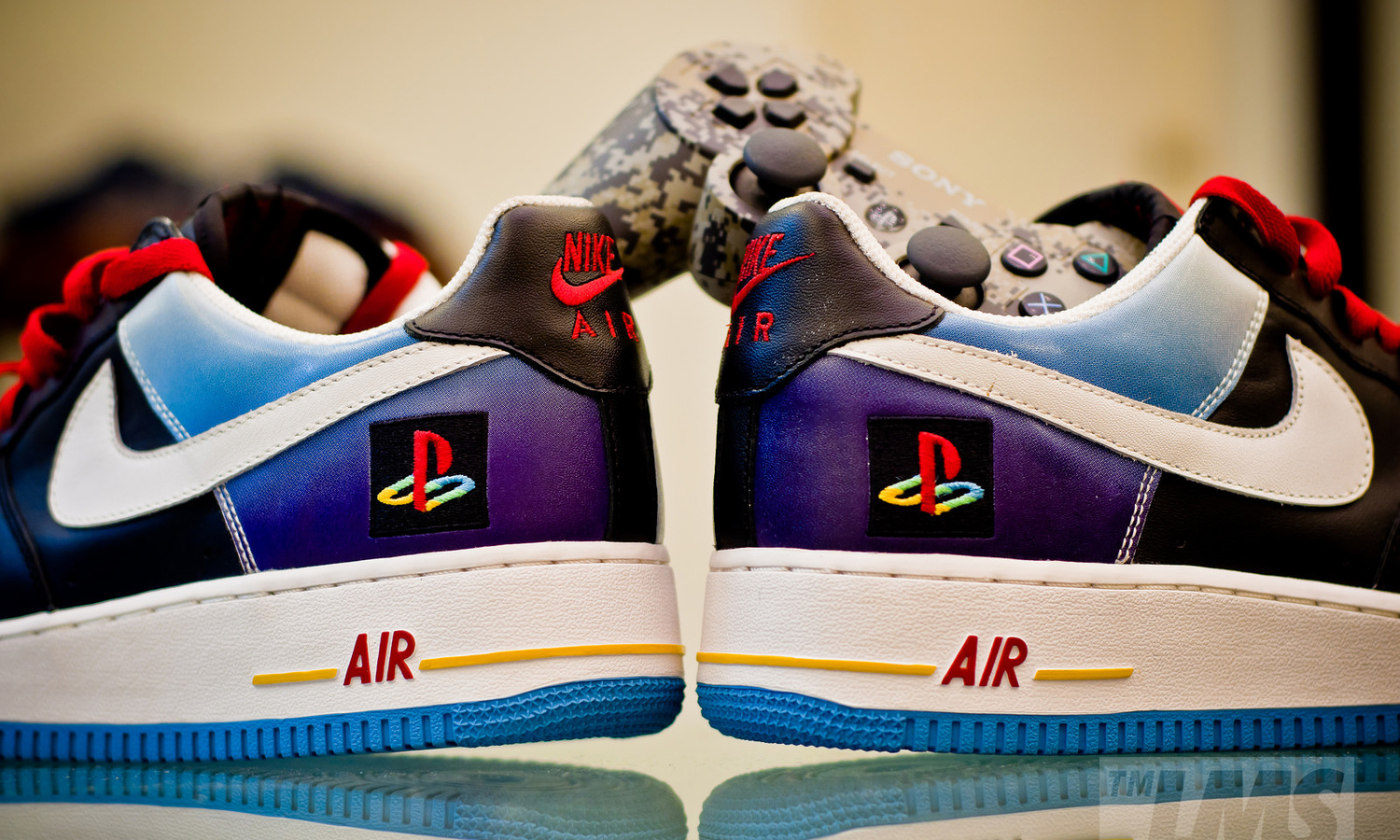 这篇文章提到,其实在最终的漆皮版本问世之前,Nike 团队设计的初版采用的是光面皮革搭配红色鞋带,但最终 PlayStation 团队希望这双鞋可以像当时发售的 PlayStation 3 一样闪耀,最终才决定换上漆皮鞋面搭配紫色鞋带…