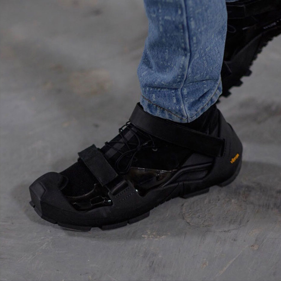 尽管在早先公布的 Nike x Matthew M Williams 运动系列中并没有看到鞋类产品的身影,但在 1017 ALYX 9SM 的首次走秀中,我们最终还是惊喜的看到了它。这双鞋款以 Nike Free Trainer 3.0 作为原型,鞋身结构十分复杂,除了袜套式高筒设计,鞋面由皮革、麂皮与漆皮呈现出了多种不同的质感,而在加上粗旷的 Vibram 大底之后,视觉上有一种 “鞋中鞋” 的感受,据说…那个包括了一圈的外底还是可拆卸的。