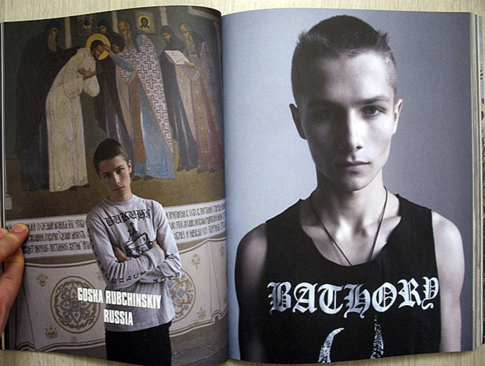 以上这位就是 ANTON LISIN 的主理人 Anton Lisin ,请注意左下角……是的,他因曾出现在 Gosha Rubchinskiy 的摄影作品中而被熟知,“许多朋友问我认不认识 Gosha,因为我看起来很像他的模特,后来有人给了我 Gosha 的社交媒体账号,我给他发了一个好友请求,惊讶的是一周后 Gosha 通过了我的申请并要我参与他的一次拍摄。”Anton 说。