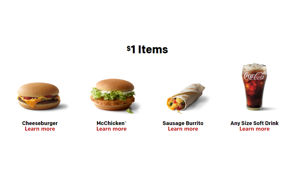 时至今日,麦当劳在北美地区仍然有用一美元就可以买到的食物(图片来源:McDonald’s)