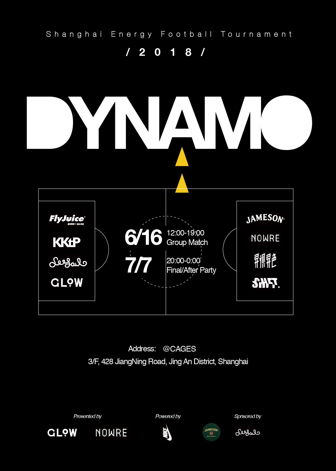 沾着世界杯的热度,我们 NOWRE 也联手运动生活方式品牌 GLOW 发起了一项活动,联合上海的八个潮流生活方式单位,举办了一场 DYNAMO 足球大赛。