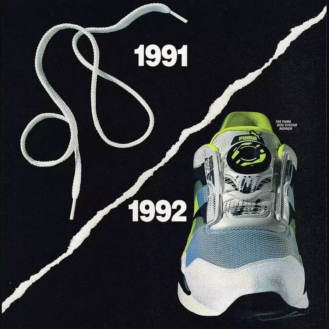 90 年代初期 PUMA 在美国跑鞋市场的市场占有份额只有 1%,当时品牌美国总裁 John O’Rourke 更直言不讳的对《费城日报》说:”我在为我们这艘船寻找一些东风,我们已经很长处于’无风状态’了”。很快 PUMA 发现鞋带并不是球鞋必有的组成部分,并且 60 年代的时候就已经在 Velcro 上做过尝试了,于是 92 年改变历史的 PUMA XC 6000 横空出世了。