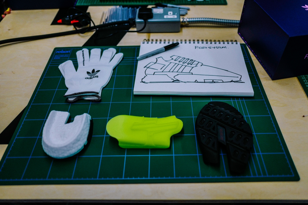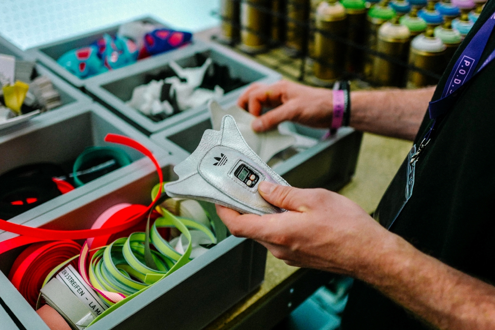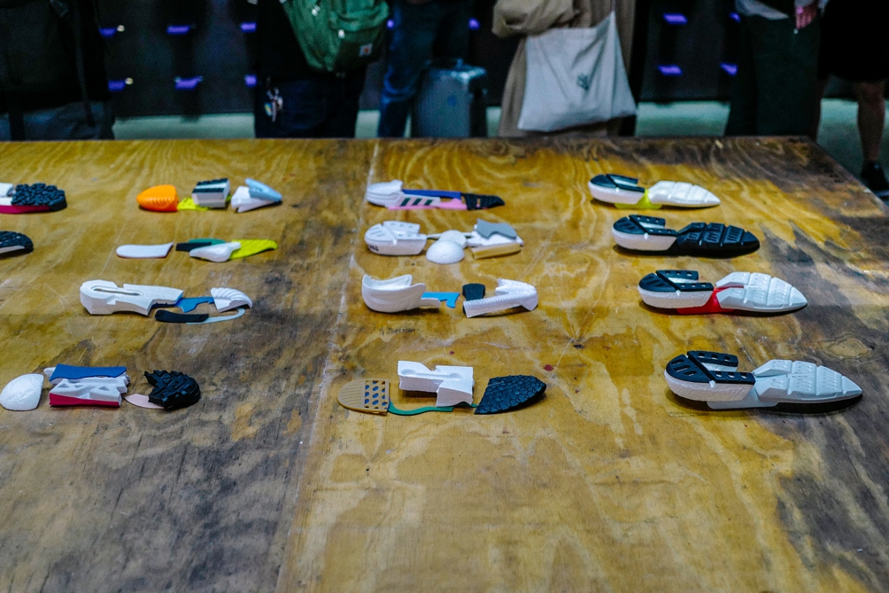 值得一提的是,我们这次自己 DIY 鞋款的场所正是位于阿迪达斯德国总部的创意工作室 MAKER LAB,在 MAKER LAB 里面,你几乎可以找到所有与球鞋制作相关或者跟球鞋没太大关系的材料和配件。比如说上图这些 Micro Pacer 的部件。