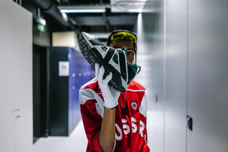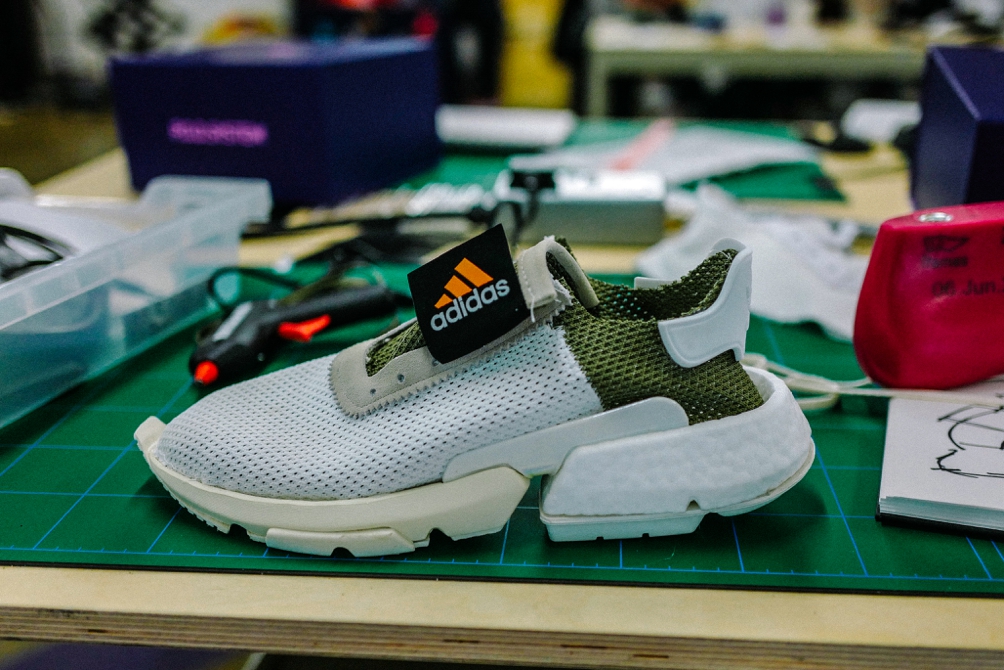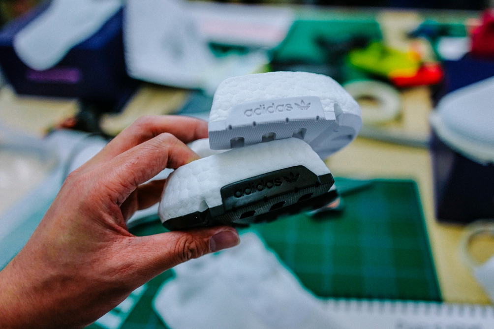 回到正题,就 P.O.D 来讲,设计师的逻辑很简单。什么是经典?这个类似桥梁的缓震系统怎么把它打碎,好让鞋底一体化?不知道大家有没有发现过去的球鞋一直都是一整块中底?为什么不可以开发一套模块设计,把球鞋进行发散式的拼凑呢?所以为了更深入的让我了解这双鞋子的创作过程,品牌直接粗暴的邀请我来到德国总部和伦敦的发售活动,制作属于我自己的 P.O.D。