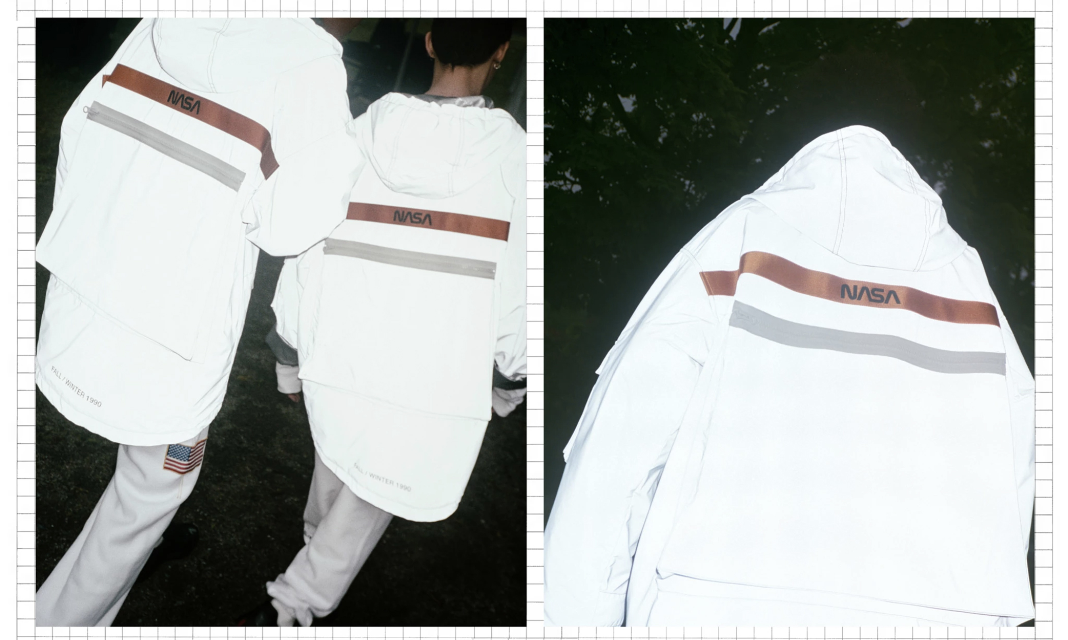 第三,在时尚圈,“未来主义” 即便不是最大的趋势,也是隔三岔五就会被提及的主题,不管是从设计本身出发追求极致未来的视觉效果,还是和代表着未来科技、探索精神的 NASA 进行直接合作,都是诠释这种未来主义的体现。而对于更加日常化的街头设计来说,用 NASA 元素和制服语言搭建出的未来主义,既直接明了又接地气。