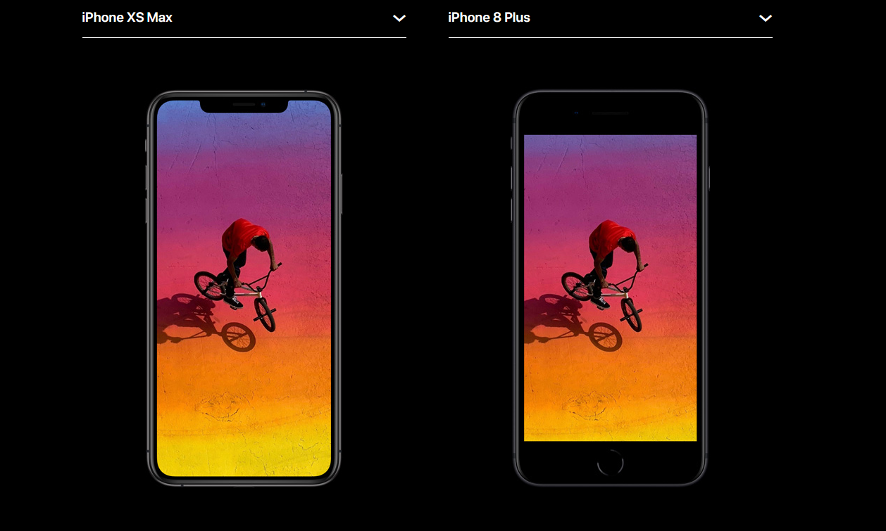 iPhone Xs Max 对比 8 Plus(图片来源:Apple)