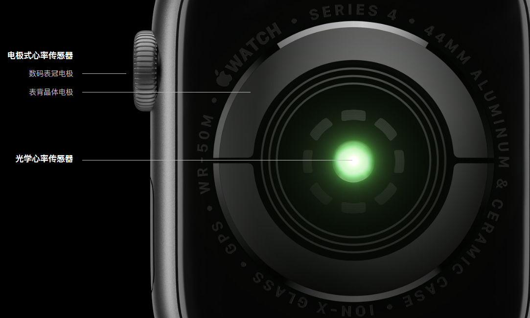 而这款手表其实除了方便操作、运动之外,更大的作用在于健康监测功能,Apple 也在今年对于这个主要功能进行了升级。Series 4 加入了心电图监测的功能,所有机型都改用陶瓷后盖,搭配三种新的心脏检测功能。不要觉得这个功能很鸡肋,它远比你想象的要实用,比如说当大家看到新款 iPhone Xs 高昂售价而心脏难以承受的时候,系统会提示你快不行了,非常贴心。手表的背面也添加了电极,大家可以随时监测自己的心电图,所有 ECG(心电图)记录会存在手机的 Health App 当中,经过高级加密,绝对不会泄露。(国行暂时不具备心电图功能)