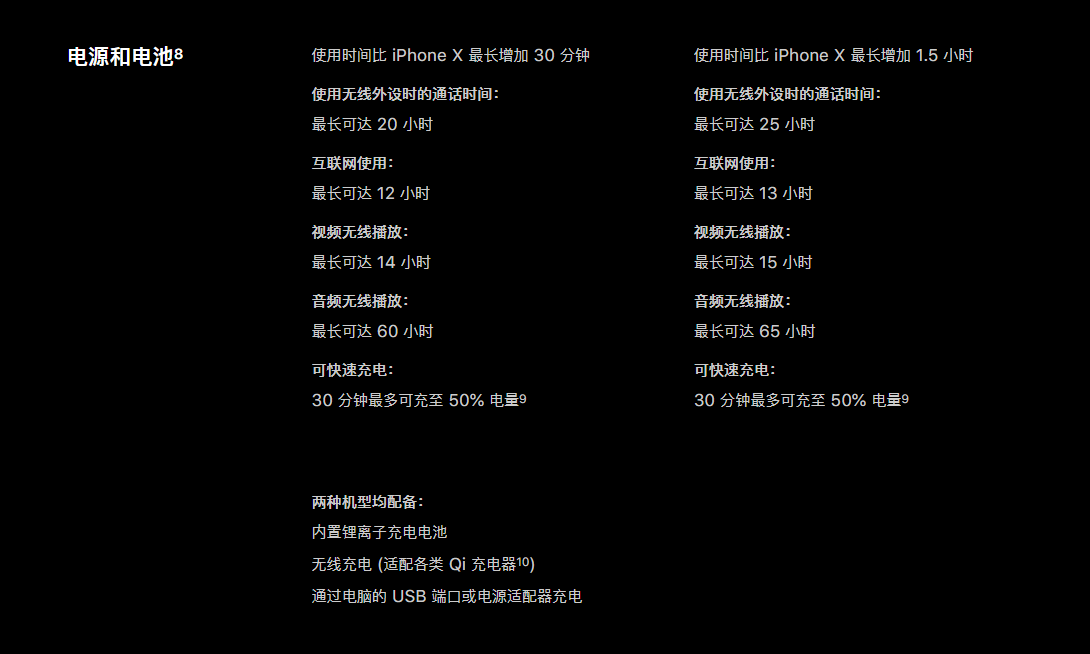 iPhone Xs/Max 的电池续航情况(图片来源:Apple)