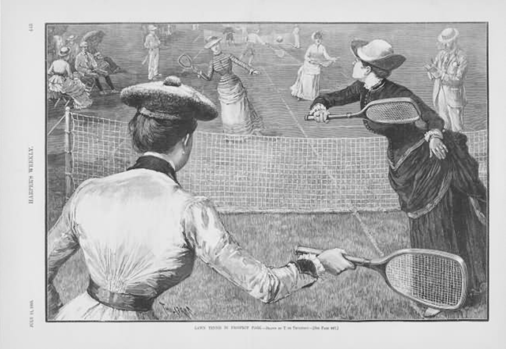 维多利亚时期,贵族女性都是穿着塑形内衣、衬裙和拖地的大裙摆裙子打球的。换句话说,那会儿最流行什么,她们就会穿什么打球,时髦最重要: