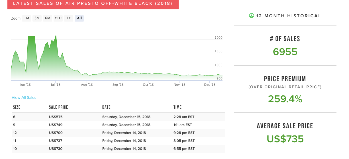 过往大家都以 ebay 、雅虎、grailed 、淘宝以及闲鱼等线上平台作为主要交易渠道,除了最基础的买卖中介服务以外,就别无其他参考价值了…如今无论你是打算买还是卖,也许都会先登录一下 StockX 这样的平台,了解一下鞋子的市场走势再作定价。高度透明化的价格让买方和卖方都能更好地作出决策,所有人的出价都将成为参考数据的一部分,继而影响着市场。