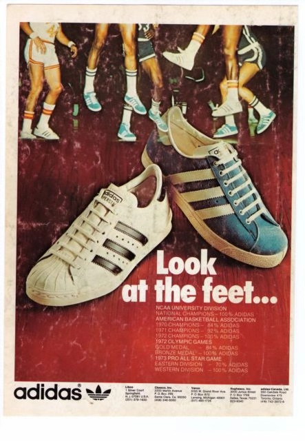 如果你仔细地看一看上面这张图片的数据,就会发现 Superstar 在美国上世纪 70 年代的一些篮球队中,球员的选择率基本上超过了四分之三,最夸张的一些队伍甚至达到了 100%。这种全队统一选择同一款球鞋的情况,放到现在几乎是不可能见到的。