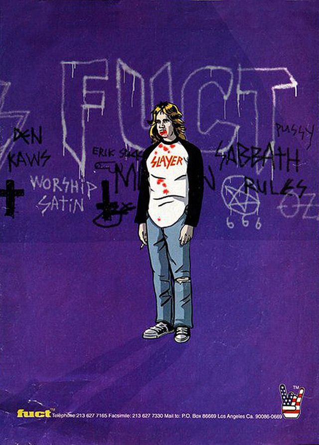 另外,当时的自制演出海报和唱片封面中挪用与拼贴的平面设计手法,或是利用鲜明对比制造视觉冲击力,也影响了往后街头服饰的图案设计。“改变平面设计的平面设计师” 杰米•里德(Jamie Reid)为 Sex Pistols 创作的专辑封面大家已经很熟悉了,他除了进行篡改和重构,加入新的元素进行拼贴之外,也以拼贴方式设计了字体,对传统美学标准进行颠覆。还有 Hip Hop、涂鸦、迷幻摇滚的标志美学等,都可在往后的街头服饰设计中找到直接的参考。