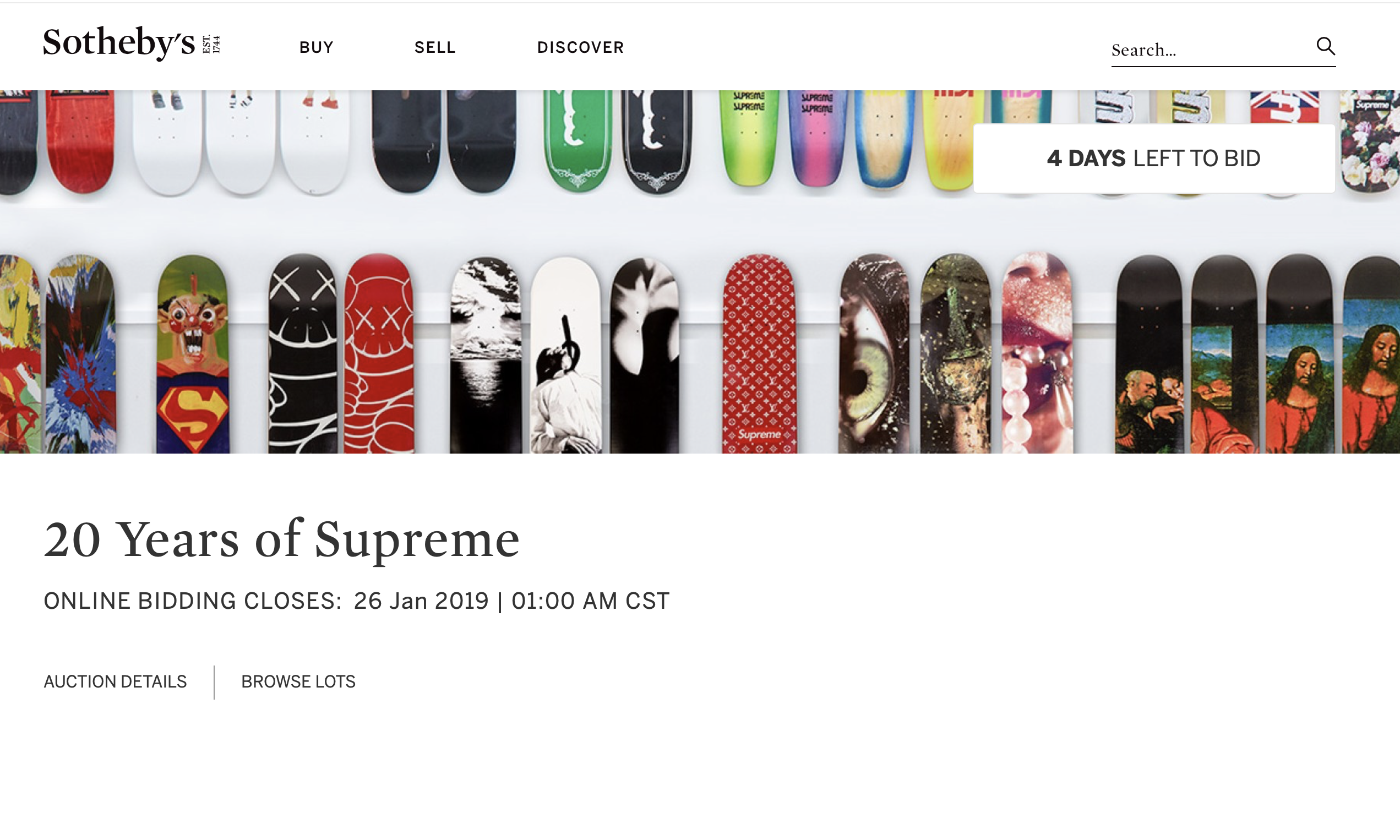 没错,Sotheby’s 是它们那个领域里的 Top 1,就像 Supreme 一样。之前也有不少单位来找过我合作,但 Sotheby’s 无疑是最好的选择。我觉得艺术与时尚两个领域一直都是紧密相连的,Supreme 就是完美的例子,所以这是有道理的,这些收藏已经不仅仅是板面那么简单了,它们就是一种现代艺术。